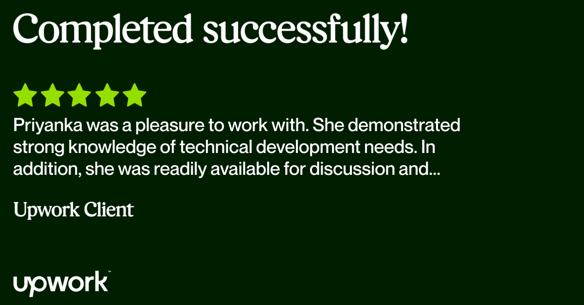"Priyanka built our company’s website and continues to support us with updates and performance improvements. She’s reliable, skilled, and genuinely cares about the project’s success."