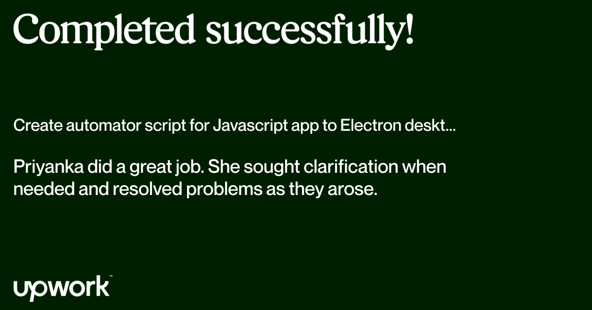 "We needed a desktop app for internal team use and Priyanka delivered a clean, efficient solution using Electron.js. She’s versatile across platforms and always meets deadlines."